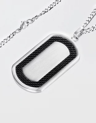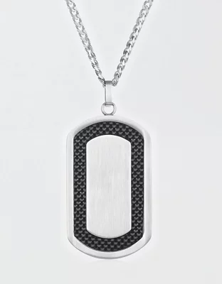 Grab this sleek and modern dog tag and pair it with any look. The dog tag has a brushed finished center that is framed by black carbon fiber.