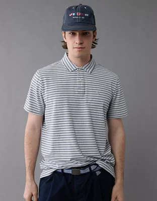 AE 24/7 Club Logo Striped Polo Shirt