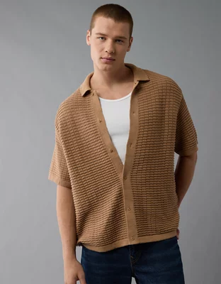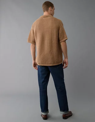 AE Weekend Textured Button-Up Sweater Polo Shirt
