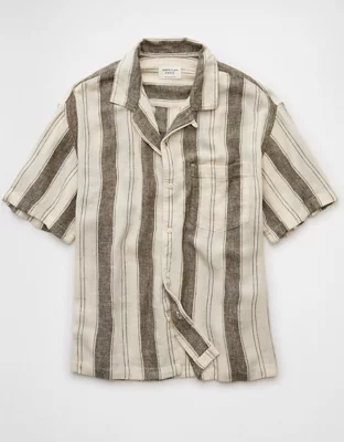 AE Poolside Linen-Blend Striped Button-Up Shirt