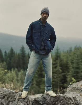 A classic straight fit throughout, now in a rich garment washed colored denim.