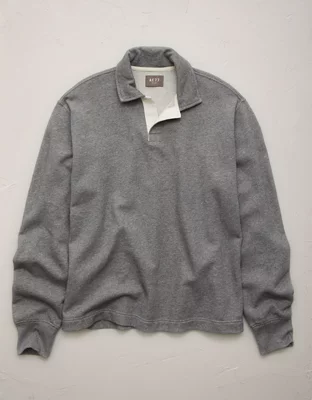 AE77 Garment-Washed Long-Sleeve Utility Polo Shirt