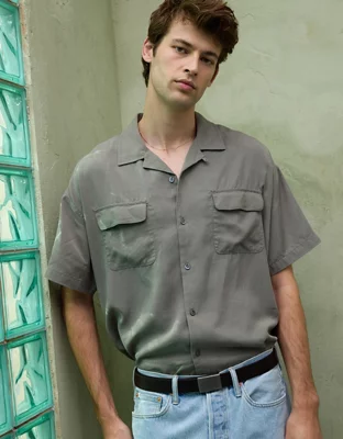 AE77 Premium Relaxed Short-Sleeve Button-Up Shirt