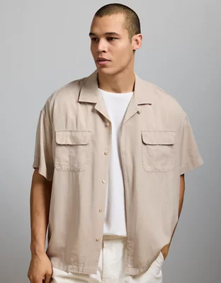 AE77 Premium Relaxed Short-Sleeve Button-Up Shirt