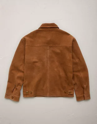Classic trucker jacket style, crafted from premium suede leather. Features authentic, vintage-inspired corozo buttons and a twill lining for all-day comfort.