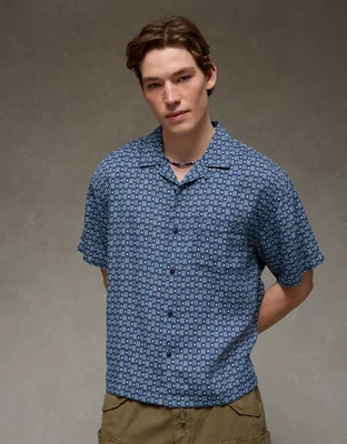 AE Relaxed Fit Camp Collar Button-Up Shirt