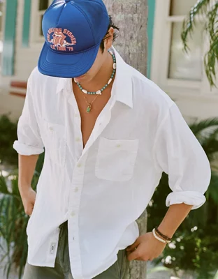 AE Relaxed Fit Linen-Blend Button-Up Shirt