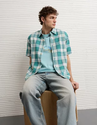 AE Standard Fit Linen-Blend Button-Up Shirt