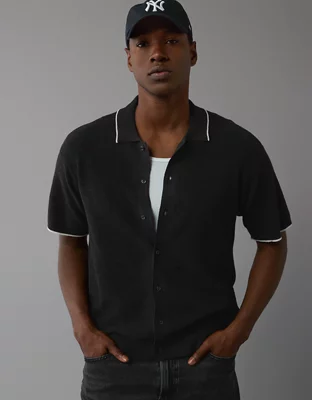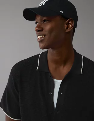 AE Weekend Waffle Button-Up Sweater Polo Shirt