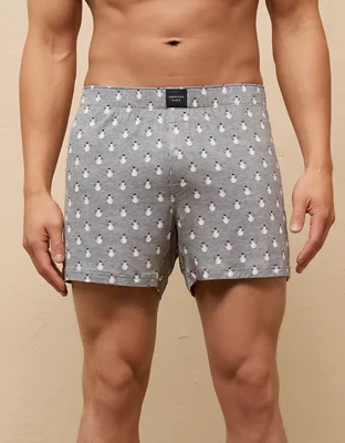 AEO Men's Mini Snowmen Slim Knit Ultra Soft Boxer Short