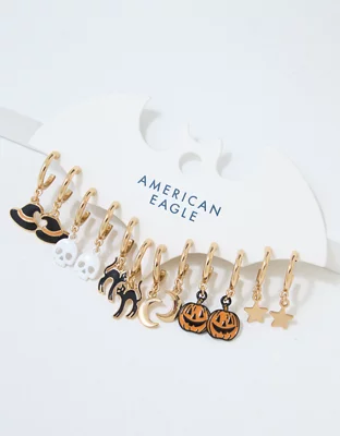 Add some spooky flair to your outfit with these mini gold-tone Halloween hoops. Mix 'n' match them all.