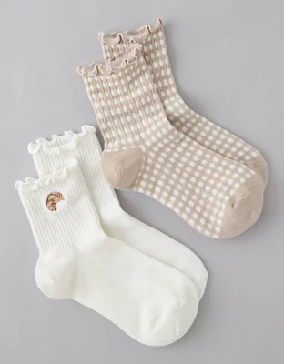 AE Breakfast Graphic Cropped Crew Socks 2-Pack