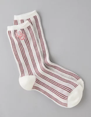 Comfy crew socks with embroidered stripes add playful look to your 'fit.