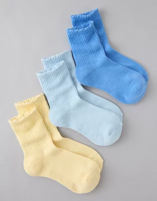 AE Scalloped Hem Cropped Crew Socks 3-Pack