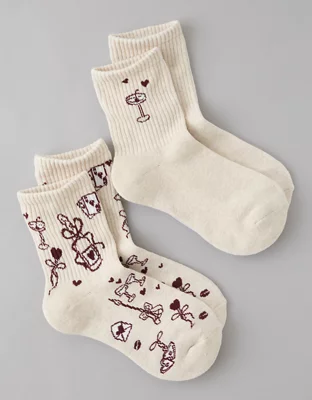 AE Valentine's Day Cropped Crew Socks 2-Pack