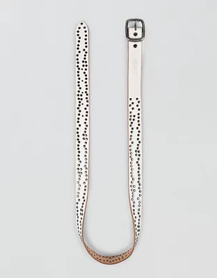 Crafted from genuine vegetable-tanned leather, this belt features mini metallic studs that add dimension to any look.