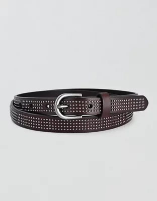 Crafted from genuine vegetable-tanned leather, this belt features mini metallic studs that add dimension to any look.