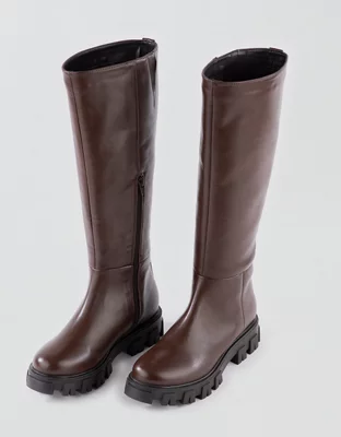 A polished & cozy tall boot in smooth vegan leather with a platform lug sole for added support.