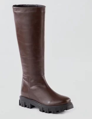 A polished & cozy tall boot in smooth vegan leather with a platform lug sole for added support.