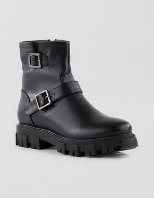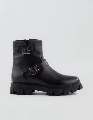 A classic moto-inspired boot with ultra-cool straps and a rugged lug sole. Wear them with everyday dresses, jeans & more for added edge.