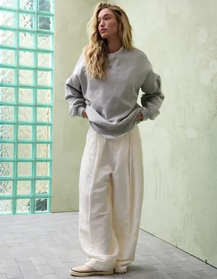 The quintessential double pleated trouser, featuring a voluminous wide leg and cut from a luxury-grade silk and linen twill.