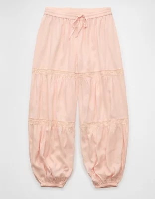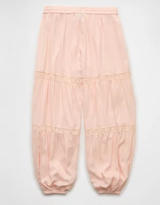 Featuring lace insert details on the legs and a silky smooth rayon fabrication, these joggers go with the flow.