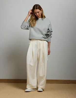 The quintessential double pleated trouser, featuring a voluminous wide leg and cut from a luxury-grade silk and linen twill.