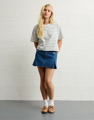 A fun, flirty silhouette with pleats for cheerleader vibes, made from your fave AE denim.