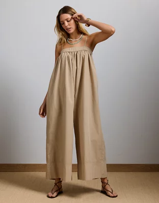 AE77 Premium Wide-Leg Cropped Poplin Jumpsuit