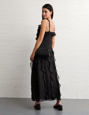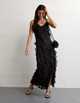 AE Asymmetrical Ruffle Maxi Slip Dress