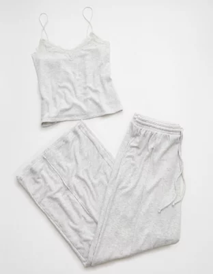 Includes a cute lace-trim cami top with cozy soft pants.