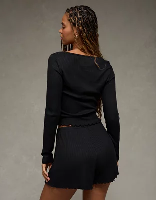 So soft and cozy, featuring a ribbed plush knit for lounge-all-day comfort.