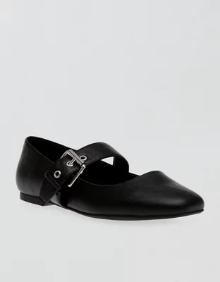 Statement hardware adds an edge to these simple ballet flats in smooth vegan leather.