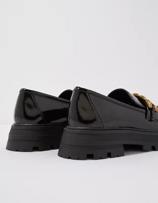 With its chunky platform heel and polished gold-tone hardware, this loafer is the epitome of bold elegance.