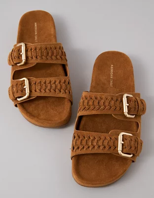AE Sueded Double Buckle Slide Sandal