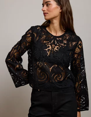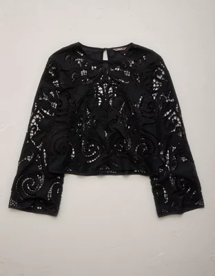AE77 Cropped Long Sleeve Lace Top