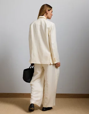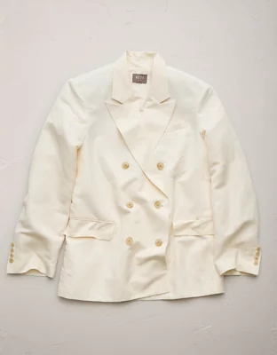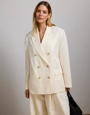 Elevate your warm weather work wardrobe with this luxurious double-breasted blazer, crafted from linen and silk in a modern oversized fit.