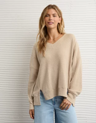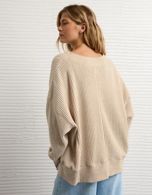 AE Big Hug V-Neck Waffle Sweatshirt