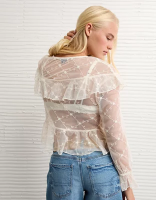 A fun, flirty top with an on-trend tie front and intricate embroidery, perfect for a day-to-night look.