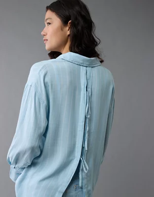 AE Long-Sleeve Tie Back Button-Up Shirt