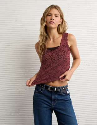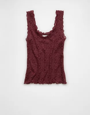 A playful, feminine tank with a lace scoop neck and a bow detail, perfect for a romantic, day-to-night vibe.