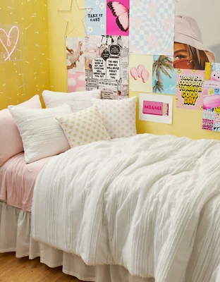 A wink of texture. Bringin back a coveted favorite in a new shade. The Eyelash Comforter and Sham Set is the textured dorm comforter you’ve been searching for. With feathery fringe on the front, this stylish comforter set reverses to a smooth grey that’s super soft on your skin.