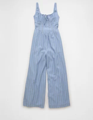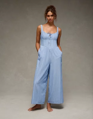 Meet Catie, a dreamy, feminine corset-inspired top with a breezy wide-leg jumpsuit bottom.