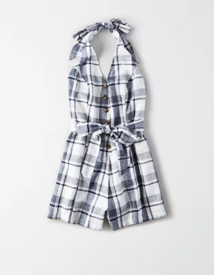 AE Plaid Button Front Romper