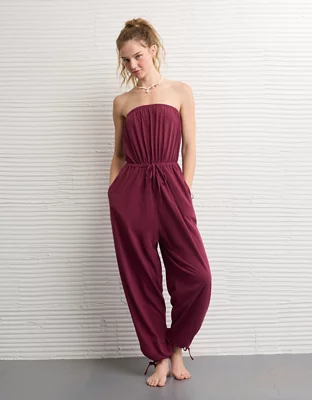 Chase the sun in this strapless jumpsuit, made from a soft knit fabrication in 100% cotton.