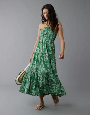AE Halter Cut-Out Smocked Midi Dress