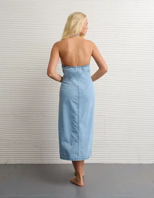 AE Halter Denim Midi Dress