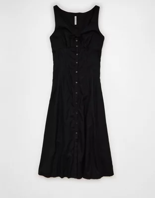 AE Linen-Blend Button-Up Midi Dress