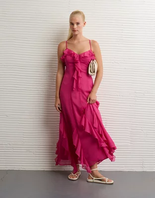 A playful, flowy maxi dress with tiered ruffles that bring a touch of romance to any night out.