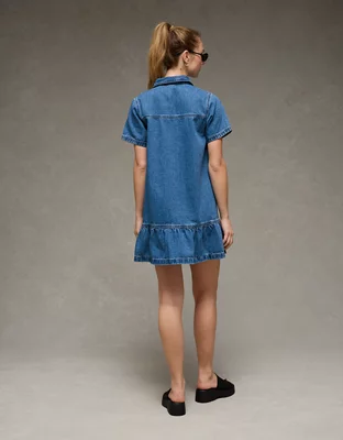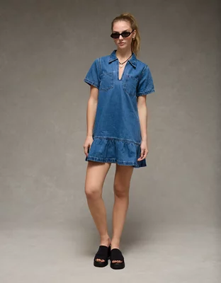 With a cute v-neck and summery short sleeves, this denim mini dress is ready for warmer days ahead.